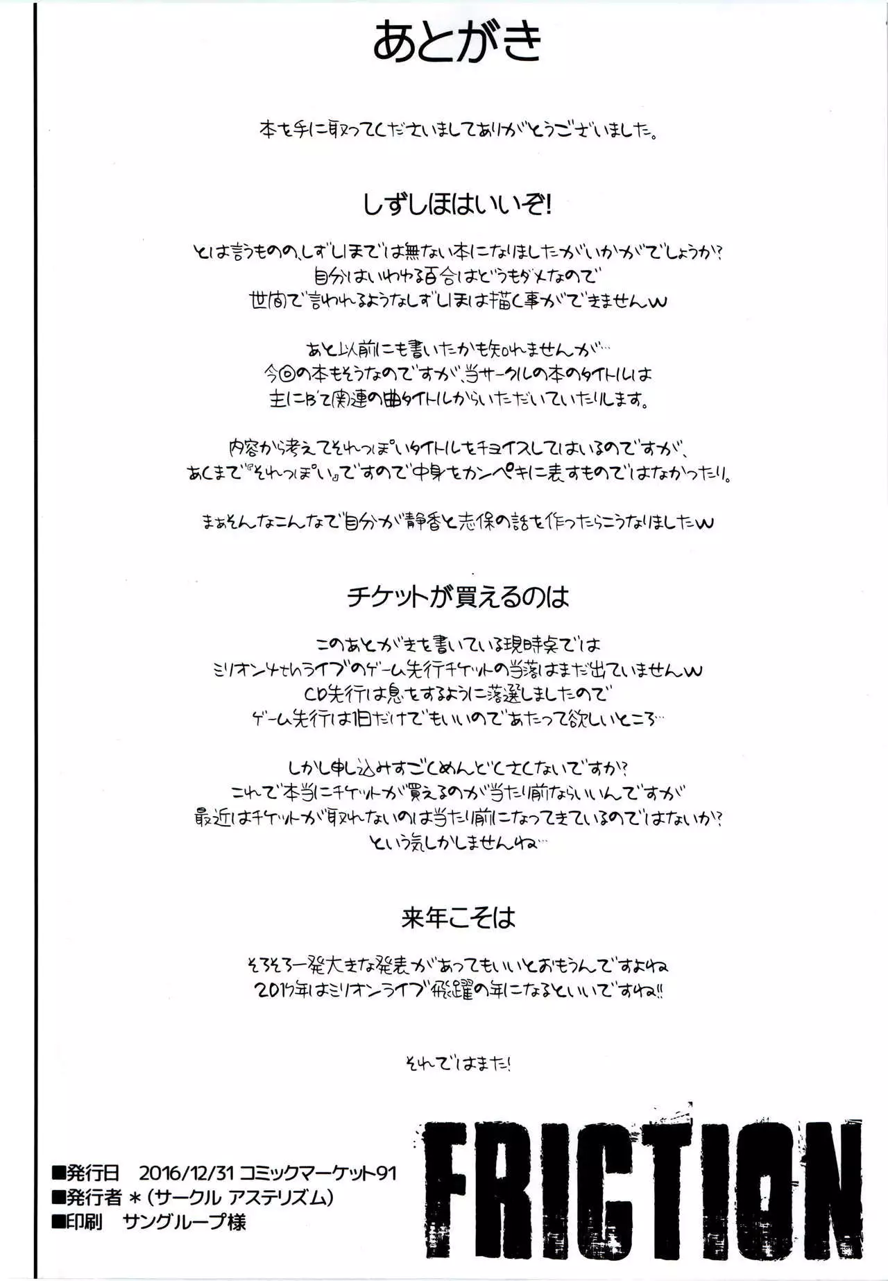 (C91) [Asterism (Asterisk)] FRICTION (The IDOLM@STER MILLION LIVE!)